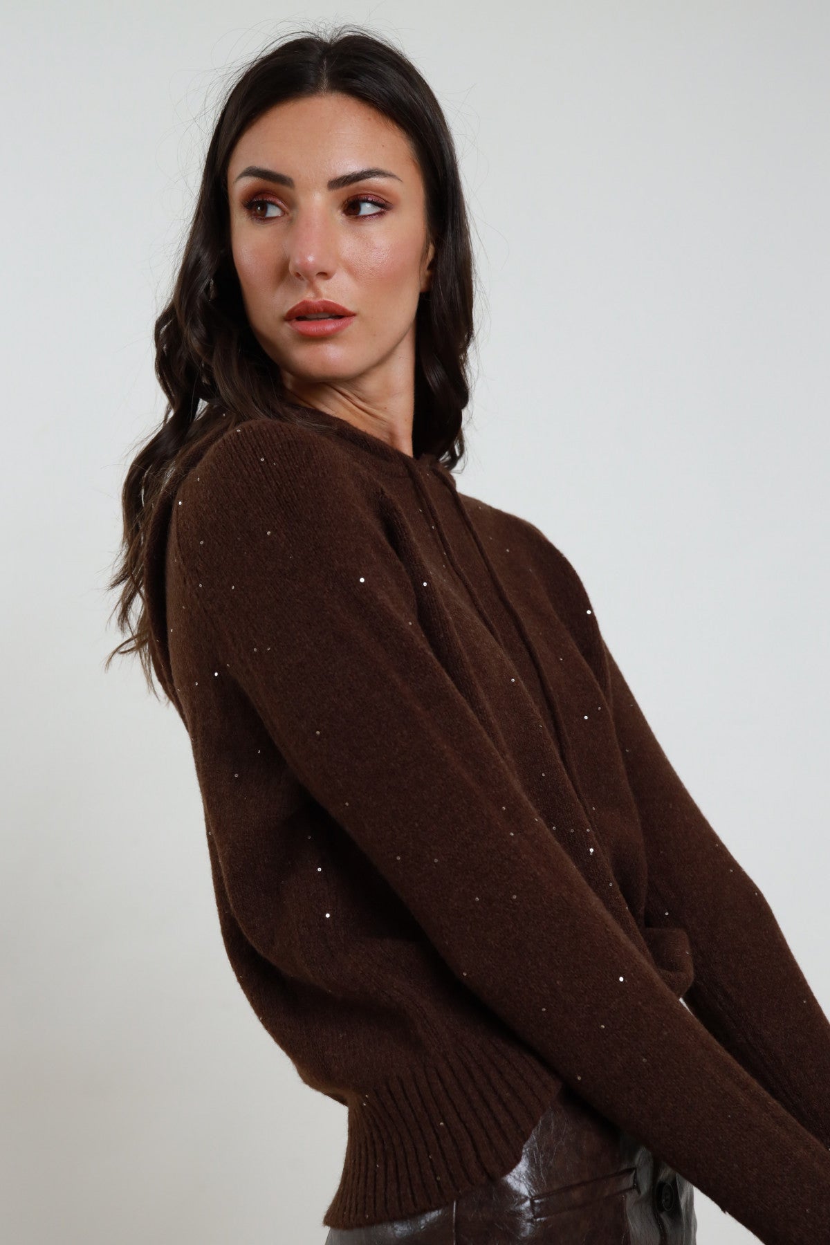 Maglia con Cappuccio e Dettaglio Tessuto Micro Paillettes.