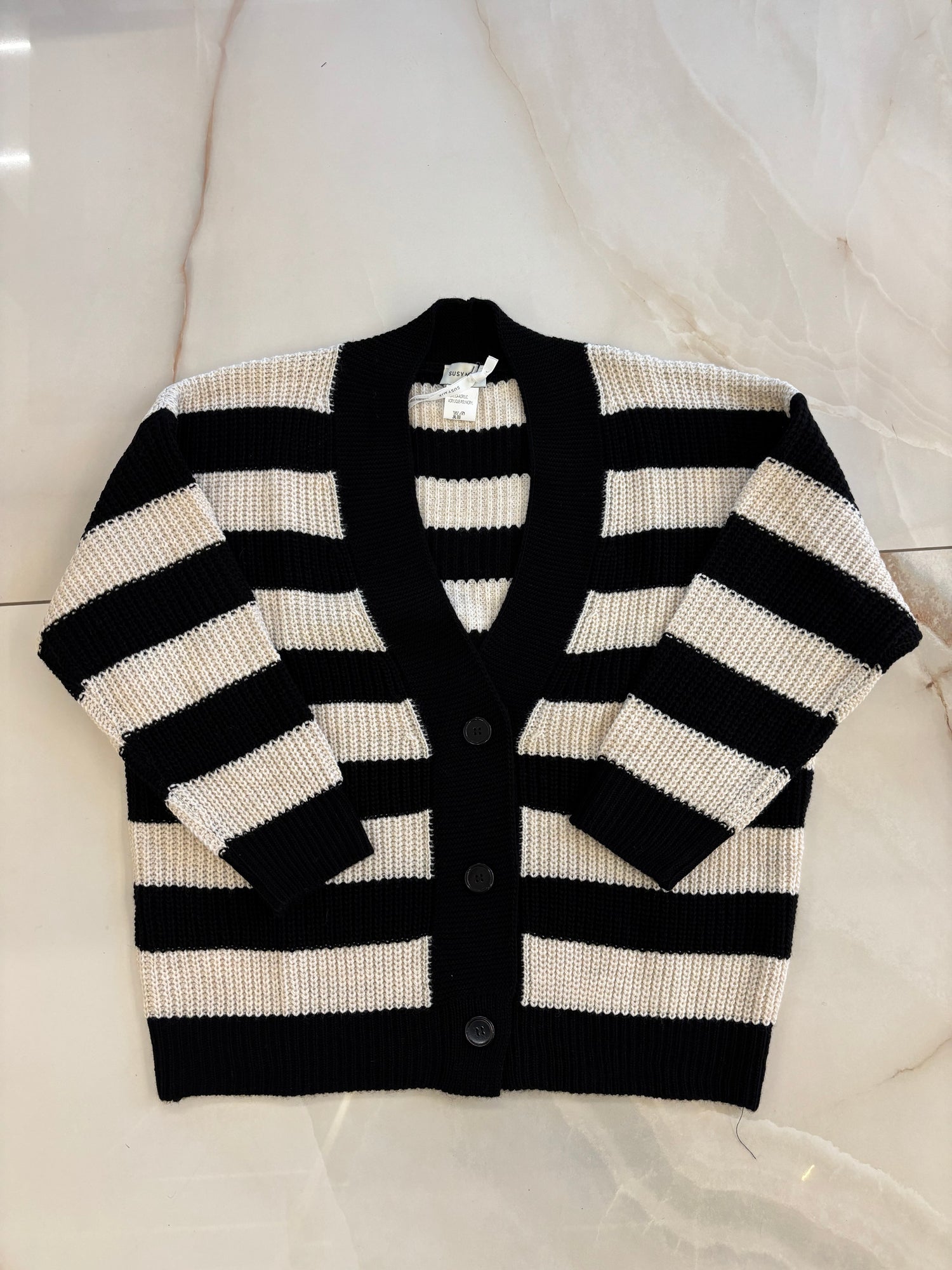 SUSY MIX - CARDIGAN RIGATO - NERO